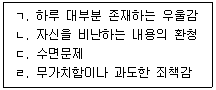 DSM-5의 주요우울 삽화 존재 여부를 판단하는 데 필요한 주요 증상을 모두 고른 것은? (단, 2주 연속 거의 매일 증상이 지속됨을 전제로 함)