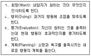 현실치료의 WDEP 모델에 관한 설명으로 옳은 것을 모두 고른 것은?