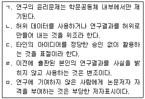 연구윤리의 내용으로 옳은 것을 모두 고른 것은?