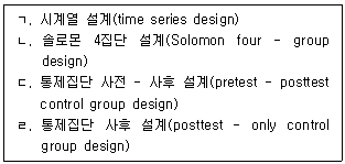 다음 중 진실험설계(true experimental design)를 모두 고른 것은?