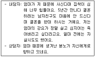 다음 사례에서 내담자가 보이는 접촉경계혼란은?