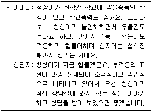 다음 상담사례에 나타난 청상이의 부적응 문제 분류로 옳은 것은?