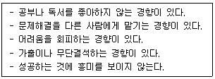 다음의 특성을 모두 포함하는 MMPI-A의 내용척도는?