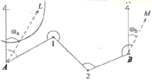 그림과 같은 결합 트래버스의 각측량 오차는? (단, ωa=20°01'27", ωb=310°48'31", 교각의 합 [a]=830°47'24")