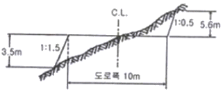 그림과 같은 노선 단면에서 여유폭을 포함하는 용지의 폭은? (단, 여유폭 = 0.5m로 한다.)