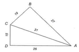 ABCD구역에 대해 각 변의 거리를 관측하여 그림과 같은 결과를 얻었다면 면적은? (단, 거리의 단위는 m이다.)
