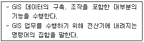 다음은 지리정보시스템(GIS)의 구성요소 중 무엇에 대한 설명인가?