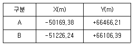 삼각점을 이용하여 터널 입구 A와 B의 좌표값에 대한 결과가 표와 같다. 측선 AB의 거리와 방위각은?