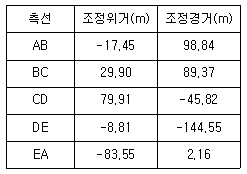 폐합트래버스를 측량한 후 계산하여 표와 같은 결과를 얻었다. 측선 BE의 방위각은?