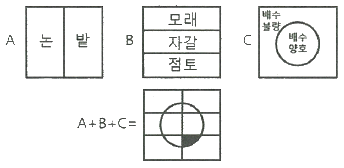 공간데이터의 중첩분석에서 음영부분(A+B+C)의 특성을 맞게 설명한 것은?
