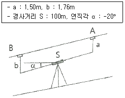 그림과 같은 터널 내의 고저차 측량에서 아래와 같은 결과를 얻었다. 두 점간의 고저차는?