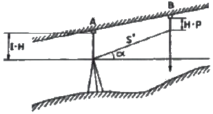 그림과 같은 터널 내의 수준측량에서 측점 A의 표고를 50m, IㆍH=1.15m, HㆍP=0.56m, α=30°00‘, 두 점간의 경사거리 s'=20m일 때 천정에 설치한 B점의 표고는?