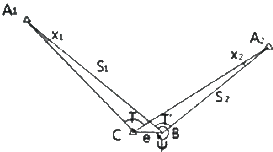 그림과 같이 편심관측을 하여 S1=2000m, S2=1000m, e=0.1m, T'=120°, Ψ=320°의 결과를 얻었을 때, ∠X1, ∠X2는?
