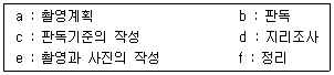 항공사진 판독의 일반적인 순서를 나열한 것으로 가장 적합한 것은?