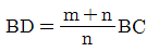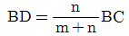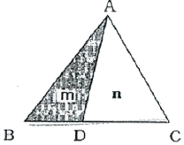 그림과 같이 삼각형(ABC)을 면적비 m:n으로 분할할 경우 BD의 길이는?