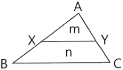 그림과 같은 초지의 1변 BC에 평행한 선으로 면적을 m:n=1:4의 비율로 분할하고자 할 경우 A, B의 길이가 120m라면 AX의 길이는?