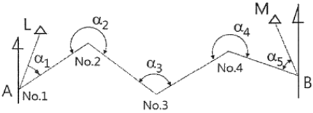 그림과 같은 트래버스에서 AL의 방위각이 19° 48‘ 26“, BM의 방위각이 310° 36’ 3”, 내각의 총합(∑α)이 1190° 47‘ 22“일 때 관측 오차는?