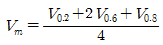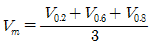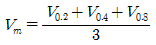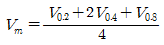 하천측량에서 평균유속(Vm)을 3점법으로 구하고자 할 때의 공식으로 옳은 것은? (단, V0.2, V0.4, V0.6, V0.8=수면에서 수심의 20%, 40%, 60%, 80%인 곳의 유속)