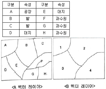 그림과 같은 A 벡터 레이어에서 B 벡터레이어를 만들었다면 공간연산 기법으로 옳은 것은?