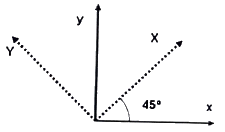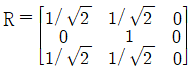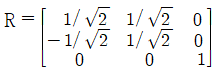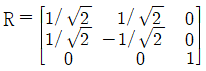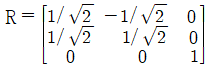 연직사진의 경우 사진좌표계(x, y)와 지상좌표계(X, Y)가 그림과 같이 구성되었다. 지상좌표를 사진자표계로 변환하기 위한 3차원 회전행렬로 옳은 것은?