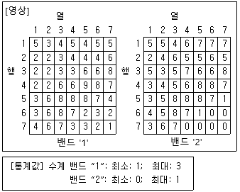 영상을 분석하여 아래와 같은 통계값을 얻을 수 있는 수계의 트레이닝 필드로 적합한 것은?
