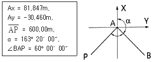 그림과 같이 삼각측량을 실시하였다. 이때 P점의 좌표는?