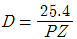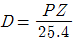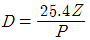 스퍼 기어에서 Z는 잇수(개)이고, P가 지름피치(인치) 일 때 피치원 지름(D mm)를 구하는 공식은?