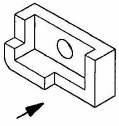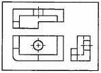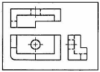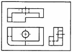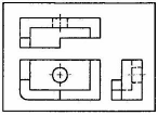 입체도에서 화살표 방향을 정면도로 할 때, 제3각법으로 투상한 것 중 옳은 것은?