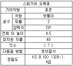 스퍼기어의 요목표에서 잇수는?