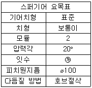 다음 스퍼기어 요목표에서 ㉮의 잇수는?