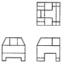 다음 그림은 제3각법으로 제도한 것이다. 이 물체의 등각 투상도로 알맞은 것은?
