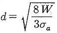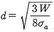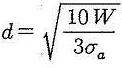 축 방향으로 인장하중만을 받는 수나사의 바깥지름(d)과 볼트재료의 허용인장응력(δα) 및 인장하중(W)과의 관계가 옳은 것은?(단, 일반적으로 지름 3mm 이상인 미터나사이다.)