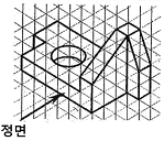 입체도에서 정투상도의 정면으로 옳은 것은?
