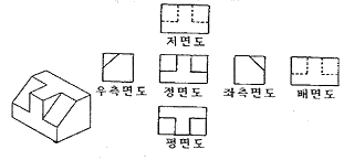 왼쪽 입체도 형상을 오른쪽과 같이 도시할 때 표제란에 기입해야 할 각법 기호로 옳은 것은?