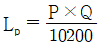 유압 펌프의 펌프동력을 구하는 식으로 옳은 것은? (단, Lp : 펌프동력[kW], P : 실제 펌프 토출 압력[kgf/cm2], Q : 실제 펌프 토출량[cm3/s] 이다.)