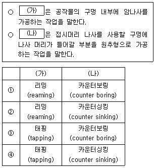 드릴가공의 종류에 대한 설명으로, (가), (나)에 들어갈 내용을 바르게 연결한 것은?