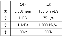 (가)와 (나)가 같은 크기의 물리량으로 짝지어지지 않은 것은? (단, 중력가속도는 9.8m/s2이다)
