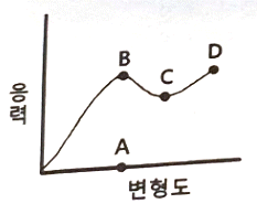 다음의 그림에서 항복점(yield point)은 어느 것인가?