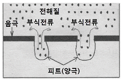 그림과 같이 개방된 표면에서 구멍 형태로 깊게 침식하는 부식을 무엇이라고 하는가?