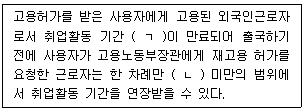 외국인근로자의 고용 등에 관한 법률상 취업활동 기간 제한의 특례에 관한 내용이다. ( )에 들어갈 내용을 옳게 나열한 것은?