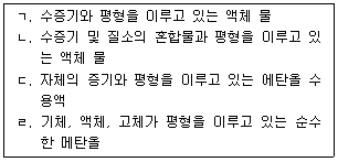 아세톤(acetone)과 메틸에틸케톤(methyl ethyl ketone)의 혼합물이 기-액 평형을 이루고 있는 계의 경우와 같은 자유도(degree of freedom) 수를 갖는 것만을 모두 고르면?