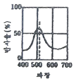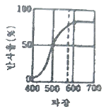 다음은 빨강, 노랑, 초록, 파랑의 분광분포 곡선이다. 노랑(Yellow)의 분광분포 곡선은?