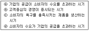마케팅관리 철학 특징의 변화를 시대 순으로 올바르게 나열한 것은?