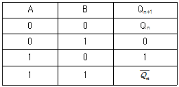 다음 진리표는 어떤 플립플롭인가? (단, A, B는 플립플롭의 입력, Qn은 현재상태, Qn+1은 다음 상태의 출력이다.)