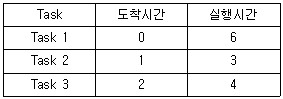 다음과 같은 Task List에서 SJF방식으로 Scheduling할 경우 Task 2의 종료 시간을 구하면? (단, 발생되는 Overhead는 무시한다.)
