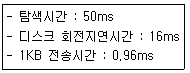 전송크기가 1KB(kilo byte)일 때, 이동헤드 디스크의 데이터 액세스 시간과 고정헤드의 데이터 액세스 시간(ms)을 구한 결과는?