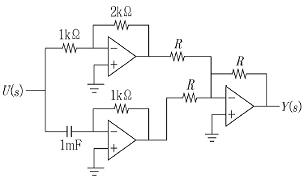 <보기>의 이상적인 연산증폭기(op-amp) 회로에서 전달함수 G(s)=Y(s)/U(s)는?