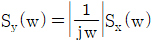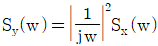 입력신호 x(t)가 이상적인 적분기를 통과할 때, 입력의 전력밀도 스펙트럼 Sx(w)와 출력의 전력 밀도 스펙트럼 Sy(w)의 관계식으로 가장 옳은 것은?