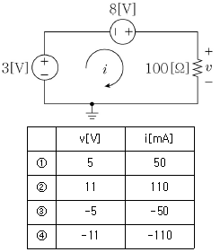 <보기>와 같이 두 전압원과 하나의 저항을 갖는 회로에서 전압 v[V]와 전류 i[mA] 값은?