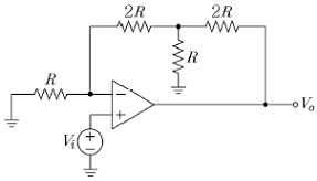 <보기> T형 귀환회로를 갖는 반전증폭기의 폐루프 이득 Av=Vo/Vi은? (단, 이상적인 연산증폭기로 가정한다.)